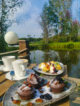 Отдых в мае 2023. Две ночи, двое взрослых. Я ожидала большего за 8500/ночь. Можно , конечно, выбрать дешевле, но без душа и туалета в домике жить некомфортно. Домики в порядке , все чисто и комфортно ( не считая насекомых!). На этом все. Мы привезли с собой велосипеды, так как на сайте написано «огромная территория». Никакой территории мы не нашли. Есть рядом два СНТ закрытых и все. Из развлечений были только лодки (500₽/час) и баня (4000₽/2 часа и 8000/4 часа). Ну и дрова, средства от комаров и клещей, которых много также платные. Ресторан есть, но цены московские. Вкусный десерт есть за 530₽.