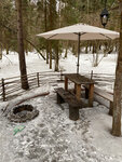 Очень интересная концепци для отеля. Домики реально маленькие))) Торфянной туалет, как лоток для кошки, так что удовольствие так себе. Заселились с семье из 4 человек в домик громадины. Из удобств: двухспальная кровать, двух яростная кровать, печька, рукомойник и туалет, как раз с этим прекрасным торфом. Рядом с домиком, на улице: стол две лавки, под навесом, Саша для костара (можно сделать шашлык, но не удобно). Рядом с домом была колонка с водой. Дрова стоят 500 руб. за тачку. В ресторан не смогли попасть было закрыто (