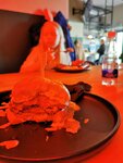 Доставка. Заказал салат, хотдог и крылья. Разочарование! Неплохая сосиска, но салат и все остальные составляющие печальны. Крылья, их пять и они пережарены в уголек и их мало, пипец как мало, это даже хорошо поскольку они невкусные и это почти уголь жаль что не активированный.