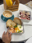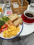 Супер завтраки, заказывала скрембл с креветкой и сырники с маком, очень вкусно! Видно, что делают хлеб на закваске. Спасибо вам за вкусное заведение❤️