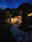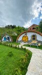 Просто великолепная задумка и реализация идеи домиков хоббитов! Очень красивая и почти безопасная территория (как минимум детей 8 лет можно спокойно выпустить, т. К они уже понимают, что в реку прыгать не надо), есть маленькая детская площадка, ресторан на территории, кострище с сидушками. Сами домики абсолютное мимими и полны таких деталей, которыми хочется наслаждаться и удивляться: плитка на стенах, жёлтый унитаз, самодельные шкафы, кофемашина, горшочки с мятой и чабрецом, юсб розетки, обогреватели, полотенца с фирменным вышитым логотипом. Всё чисто! Завтрак скромный, но сытный: на выбор горячее из омлета/яичницы/варёных яиц + наисвежайший лаваш, зелень, сыр и ветчина + кофе и сладкое. Мы с детьми остались в абсолютном восторге и готовы рекомендовать всем!