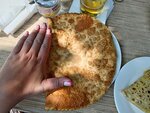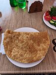 Очень вкусные чебуреки с мясом и хычин с зеленью. Чебуреки огромные, 2 штуки хватит наесться. Брали еще шашлык из говядины, порция большая. Немного жестковатое, но мясо хорошее, без жил. Покушать можно. Обслуживание быстрое. Цены: чебурек 150 руб, шашлык 650 палочка (большая). Нам все понравилось. Бонусом идет прекрасный вид на озеро 😍