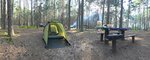 Хороший лесной (сосновый) кемпинг с беседками, столами и туалетами. Можно с детьми. Минус-озеро вне видимости, мешают деревья, до пляжа нужно идти минуты 3-4, вход травянистый