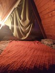 Очень уютный домик-шалаш. Шалаш находится в тихом месте, но при этом близко от Лога-парк. В домике есть все необходимое - посуда, полотенца, кондиционер, обогреватель (очень пригодился, так как попали на дождь), телевизор, мангал во дворе (+шампура, угли, розжиг). Внутри домика очень красиво и уютно, а встречать рассвет в кровати на втором этаже просто шикарно! Очень приветливая и заботливая хозяйка Ирина, спасибо ей большое! Очень рекомендую это место, если хотите комфортно отдохнуть.