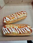 Заглянул чисто из за хайпа, место очень обсуждаемое в узких кругах когда на пьянке уже больше не очем поговорить. Само заведение удивило - смесь советского общепита с неплохим сервисом, внутри работает много людей , на кассе одна мамка которая довольно быстро всех обслуживает, внутренности этого места сомнительные но окей, решил посмотреть что выйдет, в итоге заказ сделали за долю секунды, два блина со сгущенкой по рублю и лодочка за три, за эту цену это топ, даже сосиска не такая уж и отвратная как могла бы быть, соус довольно интересный не острый и не пресный, балочка венская тоже очень неплохая для фастфуда, целиком можно поставить пять баллов