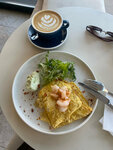 Живу рядом, проходила много раз и вот решила сходить в воскресенье на завтрак в это замечательное кафе. Заказала омлет с креветками и капучино. Еда очень вкусная, кофе тоже :) Персонал приятный, обслуживание быстрое несмотря на большое количество посетителей) Атмосфера уютная) Все очень понравилось, однозначно буду приходить к Вам еще) Процветания!