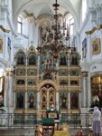 С архитектурной точки зрения собор в католическом стиле 17-го века явно подпорчен пристроенным немного позже монастырским корпусом. Никаких особых архитектурных изысков этом соборе, несколько раз менявшем свое предназначение я не увидел. В плане и по конструкции это традиционная католическая базилика. Красивый собор, но не шедевральный. Построено в 1642 году как главный храм католического женского монастыря бернардинок. И храм и монастырь в последующие столетия много раз перестраивались, к концу 19-го столетия приняв нынешний вид. В 1852-м году католический монастырь закрыли и храм превратили в православную церковь. В 1870-м это уже Свято-духов православный монастырь. Затем революция, прекращение и возобновление службы. Сейчас это кафедральный храм Минской епархии и Белорусского экзархата. Красивый иконостас и прекрасный намоленный дух в храме.