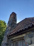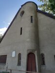Уцелевший дом карикатуриста Щербова среди современных построек.К ,сожалению, он разваливается и это, похоже вина строителей. Стены дома и забор вокруг него были сложены из живописных камней- булыжников крупной формы, которые в изобилии встречаются в нашей местности.Толи цементный раствор был «не той марки», толи что-то не правильно рассчитали с давлением на грунт- не знаю, мне самой интересна причина, но только его постоянно латали. Булыжники вываливались и их заменяли цементным раствором.А раньше он весь- весь был как бы из камней. Теперь закрыт на реставрацию.