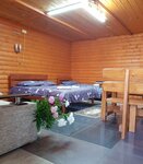 Забронировали домик за час на одну ночь. Немного заблудились, так как навигатор перестал ловить сеть. Хозяева объяснили, как доехать. Вокруг лес. Домик двух комнатный. Три кровати, одна двух спальная и две одно спальные. В номере чайник, чай, сахар. Выспались как дома. Было желание продлить ещё на день проживание , но к сожалению надо было уезжать. Если будет возможность, обязательно приедем ещё.