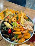 Не люблю писать негативные отзывы. Но это тот случай, когда цена выше вкуса блюд. Ни еда мне не понравилась, ни коктейли. Взяла второй коктейль в надежде, что хоть мохито будет вкусный, к сожалению, нет. Креветки в цезаре были престные, дочка брала пасту с морепродуктами, сказала, что тоже престно. Чаевые, конечно, оставили, но удовольствия не получили.