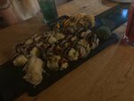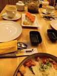 В целом удобное расположение, хорошая обстановка, приятный интерьер, отзывчивый и вежливый персонал, но...меню, скажем так, странное, удивило смешанной кухней. Роллы здесь вкусные, а вот сашими я тут боле брать не буду, потому как есть сырой морепродукт без приправ и соусов, да ещё и испорченный лимоном, нет ни какого удовольствия. Да и по качеству не тянет на сашими. Если вид тунца Вас удивит - не пугайтесь, на вкус он вполне на высоте, говяжий стейк был также прекрасен. А вот бокалы для вина не удобные, по крайней мере для меня.