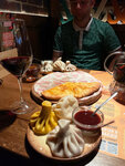 Чудесное заведение! Комфортные места, уютная атмосфера. Официант Максим всё подсказал, рассказал и качественно нас обслужил. Заказали хачапури и хинкали. Было очень вкусно и сытно! Мы вдвоем наелись хачапури. В этот раз решила попробовать что-то новенькое. Заказала хинкали с лисичками, с треской и креветкой. Восторг!!! Вкусно, нежно, интересно. Настолько всё понравилось, что решили гостинцы родителям в Ленобласть заказать здесь же через приложение на самовывоз. Там, кстати, скидочка 20% на первый заказ) Ещё хочу отметить чистоту туалетов. Было приятно находиться. И креативное напоминание привлекло внимание)) Спасибо за приём 🫶🏽