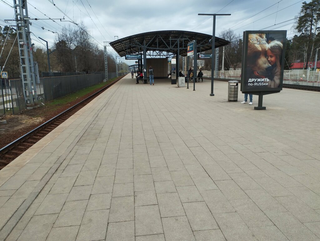 Хорошая современная платформа. Вымощенная каменной плиткой, широкая, с двумя большими навесами. Безопасный подземный переход на обе стороны. Кассы с обеих сторон, автоматы с одной стороны и у турникетов. Единственный минус -- это кафель, которым вымощен пол в турникетном зале. Как и на всех других станциях МЦД-3 использовали плитку, которая становится очень скользкой в морозы. Постелили резиновое покрытие поверх, но оно покрывает не 100% плитки, в дверях надо быть очень осторожным, чтобы не упасть.
