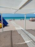 На пляже есть:спасательная служба, медицинский пункт, туалеты, раздевалки, душ, урны