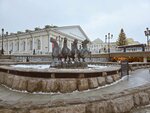 Времена года На Манежной площади расположен комплекс фонтанов, состоящий их 12 фигур. Скульптором всех композиций является Зураб Церетели, а построен комплекс был в 1997 году. Главный и самый заметный фонтан – «Гейзер». Название это он получил благодаря мощным струям воды, которые попеременно взмывают ввысь. В бассейне фонтана установлена композиция их четырех коней, носящая название «Времена года».