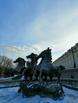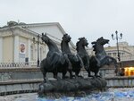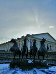 Замечательная скульптура, отражающая смену сезонов быстро текущего времени. От ярких брыз вечернего фонтана, до белого снега на гривах, летящих вперёд, лошадей.