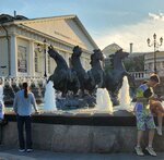 Отличная скульптура знакомая мне с детства. Четыре коня символизирующие времена года стоят на задних ногах а вокруг них мощно бьют высокие и толстые фонтаны. Место очень живописное и фотографируемое место.