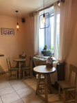 Уютная, почти домашняя обстановка. Вкусные, качественные блюда, собственного производства (киш с курицей; вишнёвый киш), кофе прекрасный и очень понравился облепиховый чай. Цены - средние (вдвоём отдали 28р.), но оно того стоит. Тепло, уютно, доброжелательный персонал. Туалет (философская комната 😆