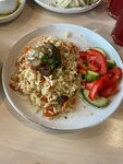 Вкусный сочный шашлык из свиной шеи в фирменном маринаде от Гарика. Хороший, добротный плов, что важно, не жирный. Есть вопросы к мантам и долме. Манты уже готовые, то есть не варят после заказа. Это минус. Манты подают уже сильно отдохнувшими и абсолютно не сочными. Долма. Вопрос в подливке в которой они лежат. Она слишком маслянистая. Перебивает вкус долмы. Овощи везде максимально зимние, без особого вкуса. К Гарику ехать только за мясом. Оно прекрасное!