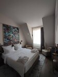 В целом отличный отель, если бы не несколько Но. Из хорошего, очень красивый вид на домики, центральное место, всё что вокруг очень красивое, гулять не перегулять, премиум номера отличные, просторные, кровати/подушки/одеяла очень комфортные. Учитывайте что эта улица закрыта иногда для машин и такси нужно вызывать чуть в отдалении. Нас это не смущало. Из минусов - завтраки, они холодные, не очень вкусные, выпечка простая, тортики несъедобные, из вкусного был творог со сметаной и абрикосовым вареньем, ела его два дня. Думала будут дранники, но нет. А в округе столько вкусных кафе, что становится еще грустнее. Шумно конечно вечерами, но во-первых об этом предупреждают и если закрываешь окна, то спишь как убитый)) И самое экстравагантное - это прозрачная стена в туалет, вау эффект обеспечен, один моется, второй подглядывает, с туалетом также, а хотелось бы хоть где-то остаться наедине с собой) Вставая ночью в туалет иди в темноте, если включишь свет в туалете, сразу разбудишь спящего, эммм. Гениально! Плюс не самое дружелюбное обслуживание, ближе к равнодушному. Но в целом мы счастливы, что выбрали именно это место, жаль завтраки не дотягивают до уровня отеля, второй день на них идешь уже с грустью.