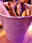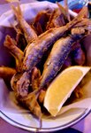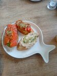 Небольшое, но гармоничное меню: рыба, морепродукты ирыбные салаты. Ну еще бургеры с треской. Бургеры не пробовала, а вот ведёрко местной мелкой рыбы во фритюре отведала. Понравилось. В восторге от форшмака. Тут его приготавливают в виде салата - нарезанными кубиками, что позволяет различить ингредиенты. На мой вкус классно. Подают его с черным подогретым в печке кусочком хлеба. Сам хлеб тоже свежий, классный.