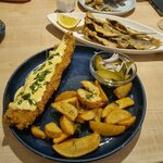 Очень нравится обстановочка , уютно. Хорошо, что нет стойкого "жареного аромата" , прямо плюсик! Пробовала барабульку, хит "ни рыба , ни мясо" . Вкусно. Коктейль с сидром, Рыбий глаз, радует глаз.🤣 Приятный официант София.