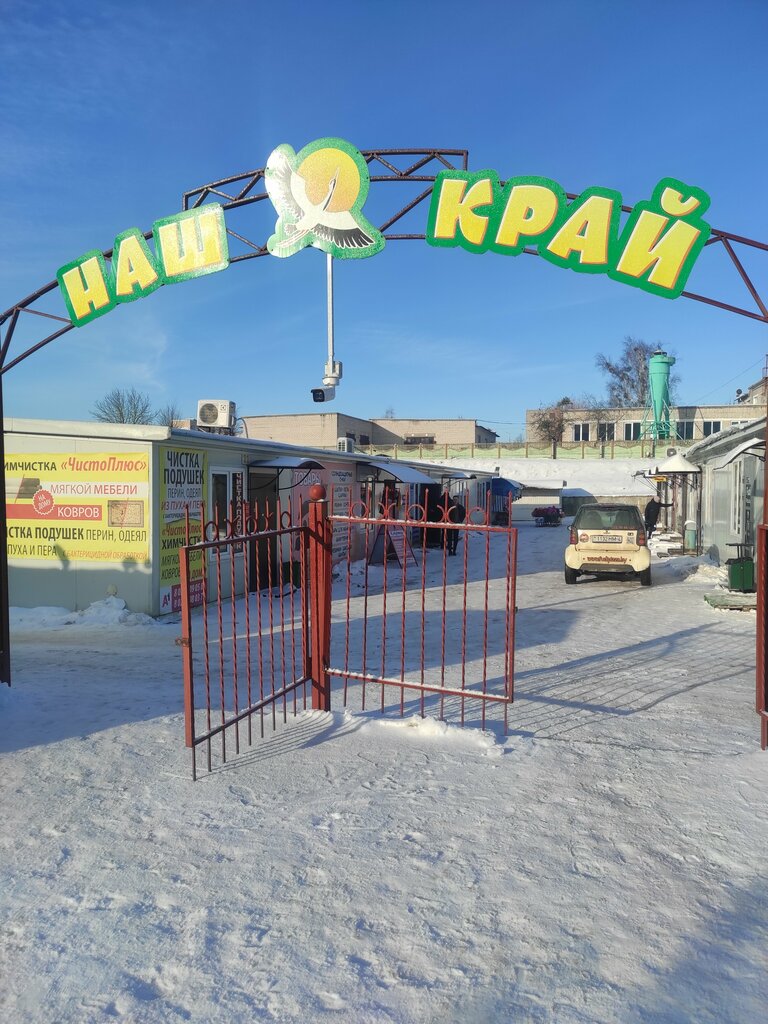 Хорошее место, здесь работают очень хорошие и отзывчивые люди, по крайней мере по отношению ко мне было так. Здесь можно решить разные вопросы: от ремонта обуви( не дорогого и хорошего) до Маникюра и Причёски. Можно приобрести парфюм от AVON и приобрести аксессуары для своего друга -мобильного телефона. Здесь можно приобрести мясо- свежее мясо и сало, которое могут перекрутить при вас в фарш!) А ещё здесь можно сдать в чистку перьевую подушку и она получит новую жизнь!)Очень хороший павильон с батарейками, пультами, фонариками и многим другим: вам всё подскажут и объяснят. Это своего рода Торговый комплекс под открытым небом! Сюда можно подъехать на своём авто, есть стоянка, и даже ваш металлический друг сможет получить уход - сразу здесь Шиномонтаж, где тоже очень отзывчивые ребята! Я осветила не всех,кто есть на "Нашем Крае", но вы не ошибётесь если приведите, потому что и голодными здесь не останетесь!)