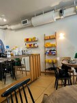 Небольшое заведение в центре города. Столиков 5 разного размера и удобства, мне повезло сесть с нормальной высотой стульев, не микро-диванчики возле низкого стола. Народу много (начало 11-го, будний день), многие уходят не найдя для себя места присесть. Зашла попробовать хит меню - творожники. Заказ подали быстро. Приличная порция нежных творожных шариков, щедрый топинг из сметаны и варенья (на выбор). Обжарка по типу фритюра, но без лишнего масла. Вкус отличный, сладости в меру.