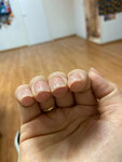 1фото-бахрома на месте среза,потому что не было шлифовки! 2фото-мизинец бледный,там не хватает цвета. 3 фото-толщина. Мастер 2жды делала одну и ту же работу зачем-то🤷🏻‍♀️ 4 фото-отслойка на указательном пальце левой руки 😄причем она появилась еще на процедуре ,но мастер решил закрыть глаза. Далее,попросила наращивание и френч! Френча,в итоге,нет🤷🏻‍♀️ Наращивали долго,формы подбирали долго,выпиливали долго! Даже топом покрывали долго! Ровно 3 часа! И за это я отдала 3.000р. Самое странное,что получая такие деньги вы используете материал для наращивания экономичного СЕГМЕНТА!