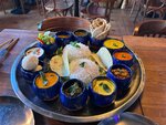 · Порция южная тхали очень большая, лучше как минимум на двоих брать) вкусно! можно попробовать много разных вариантов за раз. · Маттон корма советую, баранины много и хорошо приготовлена. · Лепешки чиз гарлик - ну нет( тонкие, суховатые, их мало, ещё и чеснока пожалели. · Не разделила восторга комментаторов по поводу масалы, мне показалась разбавленной и не насыщенной по вкусу. · Коктейль с клубничным пюре не понравился. Атмосфера приятная, необычная, интерьер красочный. Персонал быстро убирал грязную посуду и салфетки со стола. За отзыв дарят десерт 😋