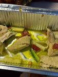 Сегодня забрали заказ на самовывоз. Я в шоке от пасты, во первых в пакете на нее поставили суп, крышка продавилась, во вторых пасту сделали совсем иначе , на картинке и в составе одно, по факту просто Слов нет. Курица всегда была нарезана кубиками и это было филе, обжаренное, цуккини нарезано кубиками мелкими, томаты черри. По итогу прикрепляю фото: масла пару литров, куски вареных куриных бедер, а цукини нарезано так, что я подумала что туда по ошибке бросили огурцы. Смена меню и скорее всего поваров сделала это заведение теперь редко посещаемым. Живем на районе и там теперь кроме пиццы и брать нечего. Был отличный куриный суп, убрали. Паста ну видно по фото что это за паста теперь.