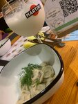 Камерное место, приятный интерьер. Неплохой выбор блюд. Однако, мы пришли поужинать за час с небольшим до закрытия, посадка почти полная, а из меню практически ничего не осталось. Два салата и 4 два пельменей. Мы взяли черные пельмени с треской и лососем, пельмени с уткой и брусникой (самые интересные) и красные пельмени с креветкой. Вот последние были самые удачные, невероятно соленые, съела две штучки и принесла ребятам на возврат, даже кисленький тар-тар их не спас. Но ребята оперативно сделали возврат, за что им спасибо.