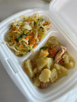 Большая очередь. Это говорит, что вкусно и уютно. Женщина подовающая еду очень вежливая и приветливая, как дома. Мы сидели на диванчиках и нам очень понравилась еда. Если для кого-то прохладная еда её можно разогреть в микроволновке. Цены вас тоже порадуют за комплекс.