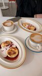 Взяли сырники и протеиновый кофе, сырники готовили минут 15 +-, а кофе принесли почти сразу. Что кофе, что сырники нам понравились (единственное сырники были достаточно сладкими, если не используются полуфабрикаты, то можно чуть убавить сахар). Пускай бариста уточняют нужно ли напитки подавать вместе с блюдом или сразу.