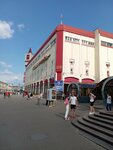 Двухэтажное здание самого крупного и популярного в Беларуси универсального магазина "ЦУМ Минск", работающего по методу самообслуживания, было построено в 1964 году. 5 ноября 1964 года "ЦУМ Минск" открыл свои двери для покупателей. Благодаря дальнейшим реконструкциям "ЦУМ Минск" стал пяти этажным зданием с потрясающим внешним видом и современным дизайном интерьеров. Визитной карточкой здания "ЦУМ Минск" является креативная башня с композицией "Меркурий" и рекламной вывеской "Универмаг". В универмаге "ЦУМ Минск" 6 входных дверей, по 3 с двух сторон здания. В торговые залы универмага "ЦУМ Минск" можно попасть по боковым лестницам с двух сторон здания или эскалаторам. С правой стороны здания эскалатор работает "вверх", а с левой "вниз". В универмаге "ЦУМ Минск" можно приобрести как любую мелочь, так и крупногабаритные товары. В универмаге "ЦУМ Минск" действует бонусная скидочная система. Очень хорошо всё продумано и систематизировано по наименованию товаров и удобно размещено по этажам и секциям. На первом этаже универмага "ЦУМ Минск" размещен продовольственный магазин. В магазине можно приобрести всё необходимое: фрукты и овощи; молочную продукцию; кофе и чай; мясную и колбасную продукцию; детское питание; хлебобулочную продукцию; корм для животных и многое другое. В торговых залах на выходах установлено много касс. В универмаге "ЦУМ Минск" есть ремонтные мастерские, зоны отдыха, банкоматы разных банков и пункт обмена валют. Работники магазина оказывают квалифицированные консультации по подбору товаров. Дружелюбная атмосфера. Рядом с магазином находится станция метро "Площадь Якуба Коласа", трамвайные и автобусные остановки в оба направления. Универмаг "ЦУМ Минск" пользуется огромной популярностью у минчан и гостей столицы.