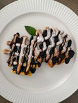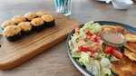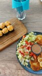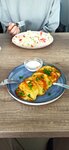 Все понравилось. Все вкусно. Салат Цезарь, драники, драники с салатом. Кофе и молочный коктейль и венские вафли.