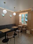 Вежливый персонал, симпатичный интерьер. На выбор есть вкусняшки, зерновой божественный круассан! Матча и кофе хорошие! Цены средние! Помещение просторное и чистое :)