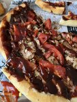 Пицца ужас, тесто твердое и сухое, но самый главный минус из-за которого эта пицца сразу же полетела в мусорку это соус. На фото было совсем чуть чуть соуса, а по факту привезли пиццу полностью всю залитую соусом.