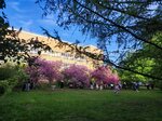 Вот мы и увидели этот парк своими глазами и очень довольны, что побывали здесь. Надеюсь, не в последний раз. Мило, уютно, дорожки, аллеи, ротонды. Множество уголков, скамеек. Сегодня тепло: на прудах утки, на газонах люди. Все отдыхают, прогуливаются неспешным шагом, читают, сидя на скамейках. В парке зелено, много птиц, аромат сирени. И каштаны цветут, даже красный