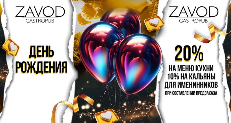 Отметь свой День Рождения вкусно вместе с гастропабом "ZAVOD""