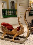 Это одно из зданий целого комплекса дворцов под общим названием эрмитаж. Здесь умер петр I, позже покои перестроили в эрмитажный театр. Это я к тому, что сюда часто забегают туристы в поисках иорданской лестницы, картинной галереи и египетских залов. Все это в основном здании. А здесь жилые комнаты петра, его восковая фигура и личные вещи. Камерный музей, очень интимное пространство обычного человека. Ощущаешь петра как современника, а не одиозную фигуру. Как будто он только что отошел от бюро, прошел мимо стола, задев скатерть. И скатерть еще колышется. И чучело любимой собаки повернуло уши, прислушиваясь к шагам хозяина. Так и сидят - любимый пес чучело и его хозяин - восковая кукла. Портрет петра на смертном одре возвращает к мысли, что царь - просто человек и путь его завершен. А царский портативный туалет в виде эстрадного сундука фокусника снижает патетику траура