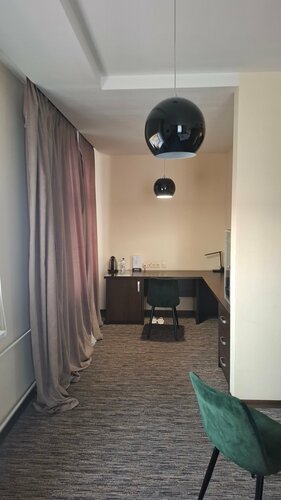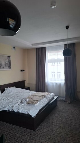 Из плюсов, это конечно расположение в самом центре города. Двухместные номера большие и комфортные. Есть все принадлежности для личной гигиены. Номера теплые, к интернету через местный WIFI подключится не удалось, так как требует подтверждения через телефон, а это ноутбук без sim-карты. Что касается минусов: в выходные завтрак на час позже (не с семи как обычно, а с восьми) но заканчивается также в 10 утра. Можно было бы и сделать его на час дольше При заказе номера в стоимость уже включены завтрак и ужин, при этом выбрать номер без них нельзя. Мы, например в воскресенье, в 8 до 10 утра были на соревнованиях и физически не могли позавтракать, хотя, по факту, деньги у нас за завтрак взяли. При этом бокс также не предложили, так как у нас как-бы не ранний выезд. Ужин же был на выбор, блюда выбираются на ресепшене, где был задан странный вопрос: когда мы придем кушать. Странный потому что вечером не очень хочется планировать свое время опираясь на ужин в гостинице. Порции маленькие, поэтому лучше, если много ходили по городу, купить себе что-нибудь перекусить в номер. Сын заказал драники, которые ему не понравились, я их попробовал, действительно драники здесь на 3 из 10, поэтому не советую. Что касается цены, совсем не дешево, но учитывая, что это центр города допустимо. В нашем случае, сутки двухместного номера вышли почти в 300 белорусских рублей. Но в целом, переночевать и быть в центре Гродно отличное место. P.S. Есть своя парковка во дворах, попасть туда без знания места сложно, я бы сказал невозможно (мы в темное время суток так и не нашли въезд), поэтому в фотографиях прикрепил карту, как проехать.