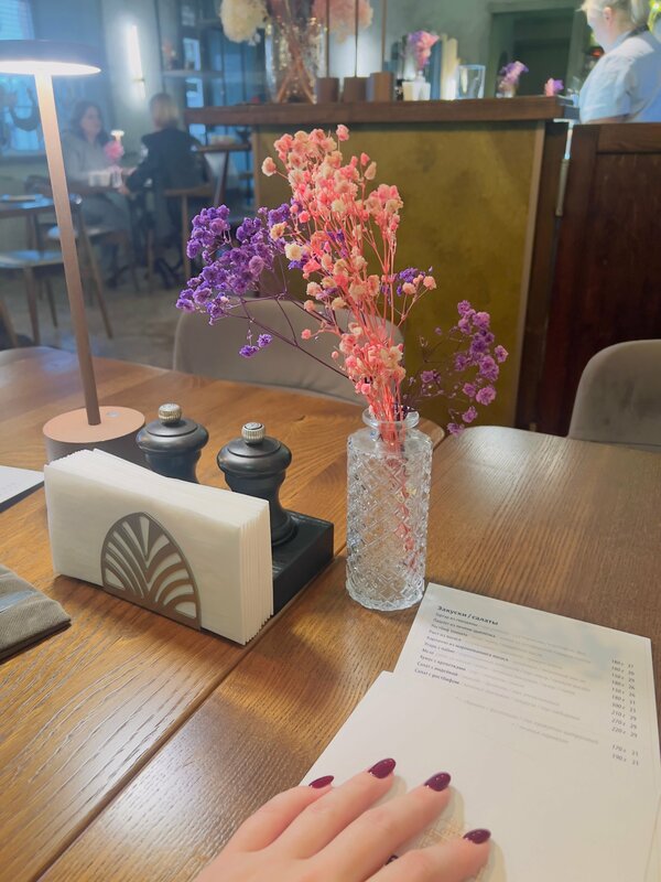 Были в Минске на днях, случайно узнали об этом месте и не разу не пожалели! Очень вкусное меню с потрясающими коктейлями) Хотелось попробовать все позиции из меню) пробовали десерт бутерброд с икрой, подача тоже потрясающая) Отдельное спасибо официанту Алене, которая помогла проникнуться атмосферой)
