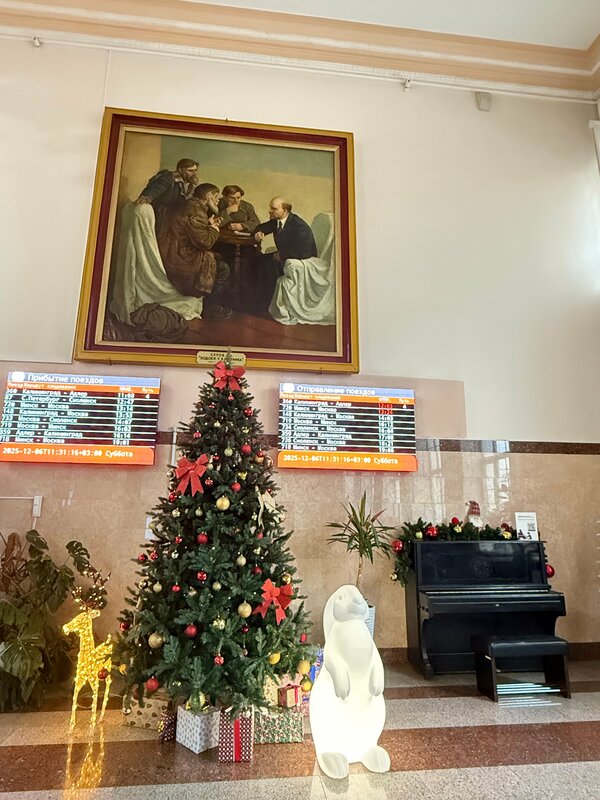 Очень милый хорошо отреставрированный вокзал. Жаль, что нет подземных переходов между путями, только лестничные старые переходы, заложенные при постройке вокзала. Связи на вокзале нет, как и инета. Железнодорожные пути делят город на две части. Объезжать долго и дорого. Такси от 300 руб на декабрь 2025. Внутри чисто, вокзал готов к новому году. Даже портрет Ильича есть. В туалете не была. Ничего не могу сказать.
