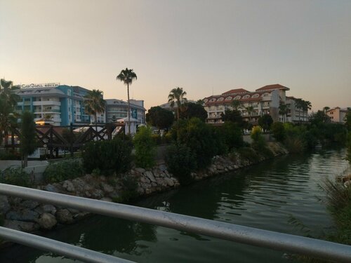 Отель на твёрдую 4,но это не 5 звёзд. Питание хорошее, разнообразное, но не учтены некоторые нюансы. Столовые приборы, их никогда не хватает, а чайных ложек я вообще не нашла, посуда грязная, особенно чашки. Столы и количество гостей не соответствует, вечно ищешь и ждёшь где присесть. Несколько раз в неделю у них особенный ужин, либо это морепродукты, либо шаурма, либо суши. Так вот, если вы не пришли заранее и не стали в очередь, то можно остаться без деликатесов. Алкоголь абы что. По поводу молитв из мечети , не слышно когда спишь, а кому слышно любой шум, берите беруши, потому что слышно и как за стенкой храпят и дети бегают и кричат за дверью. Бессейны неплохие, очень большой плюс это крытый бассейн, в солнцепёк самое то. На ресепшене неприятная одна особа работает, темненькая такая, волосы длинные, по русски говорит хорошо, но если что-то спрашивать, отвечает неохотно и с недовольным лицом. Уборка номера это так, больше формальность, иногда забывали положить свежие полотенца, но зато питьевую воду в номере пополняли ежедневно , а и кстати одноразовых шампуня и гель душа нету, только ватные диски и палочки и шапочки для душа. Пляж хорош, доставка до пляжа в виде электромобиля, тоже неплохая затея. Понравилось обедать на пляже, напитки тоже имеются на пляже. Вдоль отеля проходит река, запах от неё стоит неимоверный, в общем канализацией несёт . Но там много черепах, это забавляет, кормили хлебом. То, что река впадает в море именно на пляже этого отеля не очень хорошо, так как вода холодная оттуда и местами море холодное, а если долго находиться в море, то на волосах по всему телу оседает ил речной, мы были удивлены, но смывается легко. Так что рекомендую ходить купаться подальше от реки, никто не выгоняет, можно хоть по обратную сторону реки купаться. Доставка до большого магазина Молл в Манавгат, это что-то! 😅 Первый раз они везут якобы бесплатно, но через магазин-спонсор, мы выбрали ювелирный и пожалели, далеко он от Молла находится, много потеряли времени. А обратно сами как хотите добирайтесь. Мы люди экономные, решили общественным транспортом. Сели на 2 автобус до автовокзала в центре манавгат и там пересаживаться на 3 автобус в наш посёлок Еврэнсеки. Второй раз мы поехали сами на этом 3 автобусе, но он едет и высаживает с обратной стороны и идти пешком до молла 1300 метров ещё. В целом отдых был хороший, но второй раз я туда бы не поехала. Фотографий мало, так как свой телефон сломался.