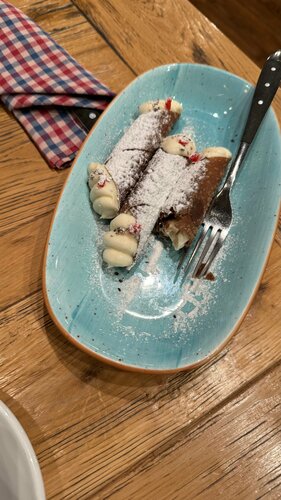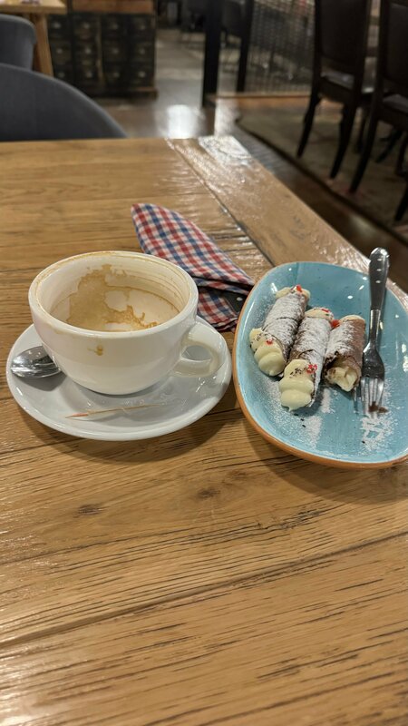 Давайте начнем с хорошего. Расположение, ты походил по магазинам и пообедал. Столы большие, места много. Мясо было вкусное. А вот кофе и десерт нет. Перейдем к минусам. Капучино не вкусный, но я и не сильно требования к нему предъявляю, все же вы не кофейня, специализирующаяся на хороших зернах и правильной работе машины, но тем не менее есть рестораны, где кофе не вкуса с заправки. Десерт. Отвратительный. Я заказала трубочки с рикотой. Я готовлю дома сама пп выпечку, я ем и коту и знаю ее вкус, вы мне принесли химические трубочки со вкусом пластмассы, которые я даже есть не стала. Официант спросила, все ли хорошо, я озвучила, что трубочки просто отвратительные и вам нельзя их продавать в заведении. Вот честно, дешевый торт 7карат, который все умудряются принести на работу как проставиться, намного вкуснее. И тогда у меня вопрос: а в чем заключается суть вопроса к гостю вашего заведения? повторюсь, вопрос был следующий « всё ли вам понравилось?» Вы даже не попытались как-то урегулировать эту ситуацию с десертом, просто принесли мне счёт. Я не то, чтобы скандалить хотела и не платить, но спросить и начать со мной спорить, что у вас все натуральное… Каноли с рикотой оставляют желать лучшего. Вернусь ли я к вам еще? Скорее всего нет. Несмотря на то, что часто прихожу в этот тц. Потому что мясо может и вкусное, но даже кофе, который я безумно люблю, отвратительный. Рекомендовать тоже не стану.