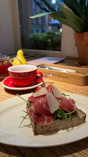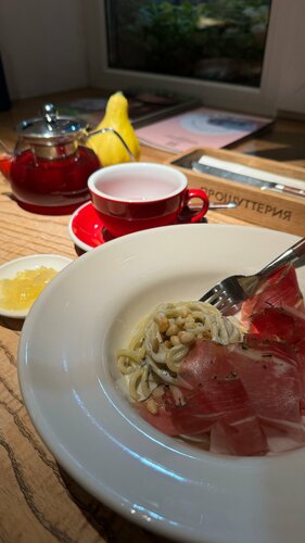 Это было очень вкусно. Уютно. Ароматно. В заведении достаточно плотно друг другу сидят люди, поскольку оно небольшое. Но это никак не доставляет какого-то дискомфорта. Чувствуешь себя как в кругу Старых Добрых друзей. Единственное, что омрачила, это ожидание. Или я была слишком голодная, что время тянулась мучительно долго, но я 15 минут ждала брускетту, а потом, съев ее, ждала пасту еще минут 5. Я понимаю, что это не бистро, наверное все же я была слишком голодной 😊 но и тогда официант должен подсказать, что, например, сырная тарелка будет быстрее брускетты. Или вообще может суп самое быстрое, подогрел немного в сотейнике и подал, ведь его никто не варит под заказ гостя.