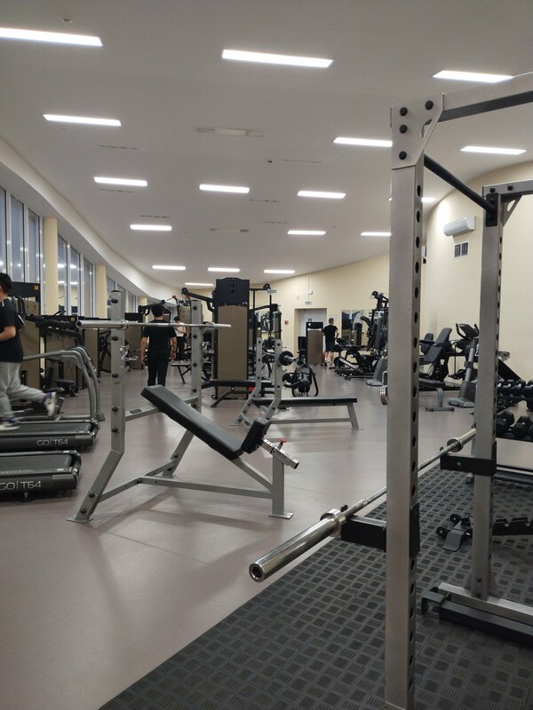 2 этажа, тренажёрные залы силовой и кардио. Есть спортивный зал, можно поиграть в настольный теннис и бадминтон. Также есть сауна и бассейн с джакузи! Цены государственные.