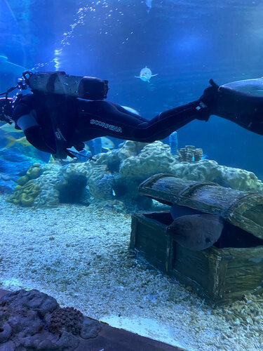 📍 Посетили океанариум в ТЦ РИО, понравилось. Это первый океанариум в Москве и после открылись с размахом в Крокус Сити и на ВДНХ. Здесь всё меньше уютней и по-домашнему. Попали на кормежку акул и пингвинов в 16.00 , сами покормили )) за дополнительную плату. Есть сувенирный магазин, кафе. Большая парковка. Если решите посетить, то вам лучше парковаться и входить через вход Д ( рядом с «Веусно и точка». Рекомендую.