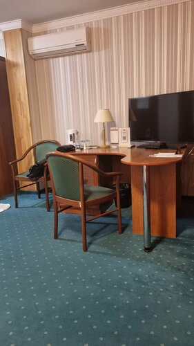 Гостиница - хорошая трёшка. Номера просторные, всё необходимое есть: кондиционер, ТВ с большой диагональю, сейф, холодильник с мини баром, чайник, чайные принадлежности. Кровать и подушки достаточно удобные. Завтраки не богатые, если постояльцев мало, то вместо "шведского стола" предлагается "континентальный" завтрак, в проживание можно включить ужин из меню Кафе. Основные минусы: медленный и глючный интернет, утром практически нет горячей воды ( пропускал 30 минут, толку "0" жил на 6 этаже).